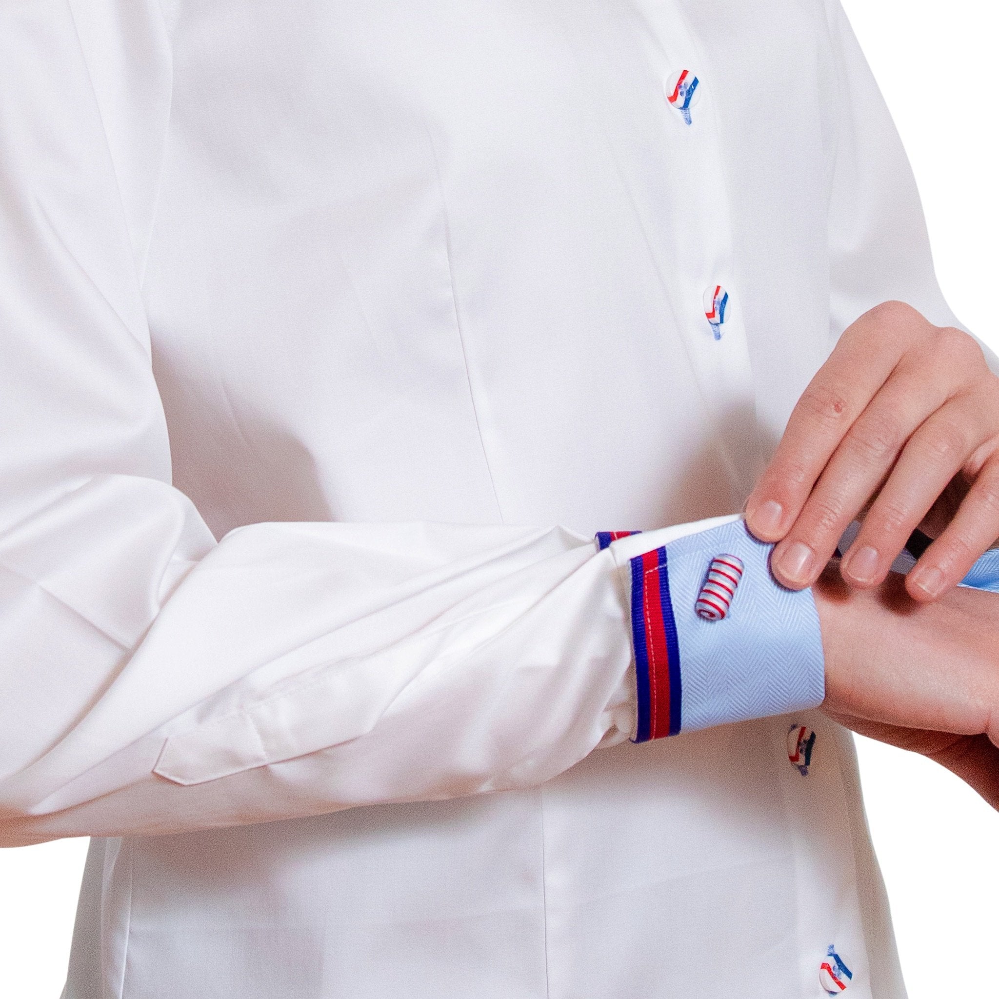 Meet your go-to fitted shirt for workdays, events, and everything in between. Cut in breathable 100% cotton poplin, it feels crisp yet comfortable from first wear. The standout is the contrast trim, at the collar stand, inside the cuffs, and along the placket, adding a sharp pop of colour that lifts any outfit. Dress it up with denim and boots or tuck it under a blazer; either way, the trims do the talking.