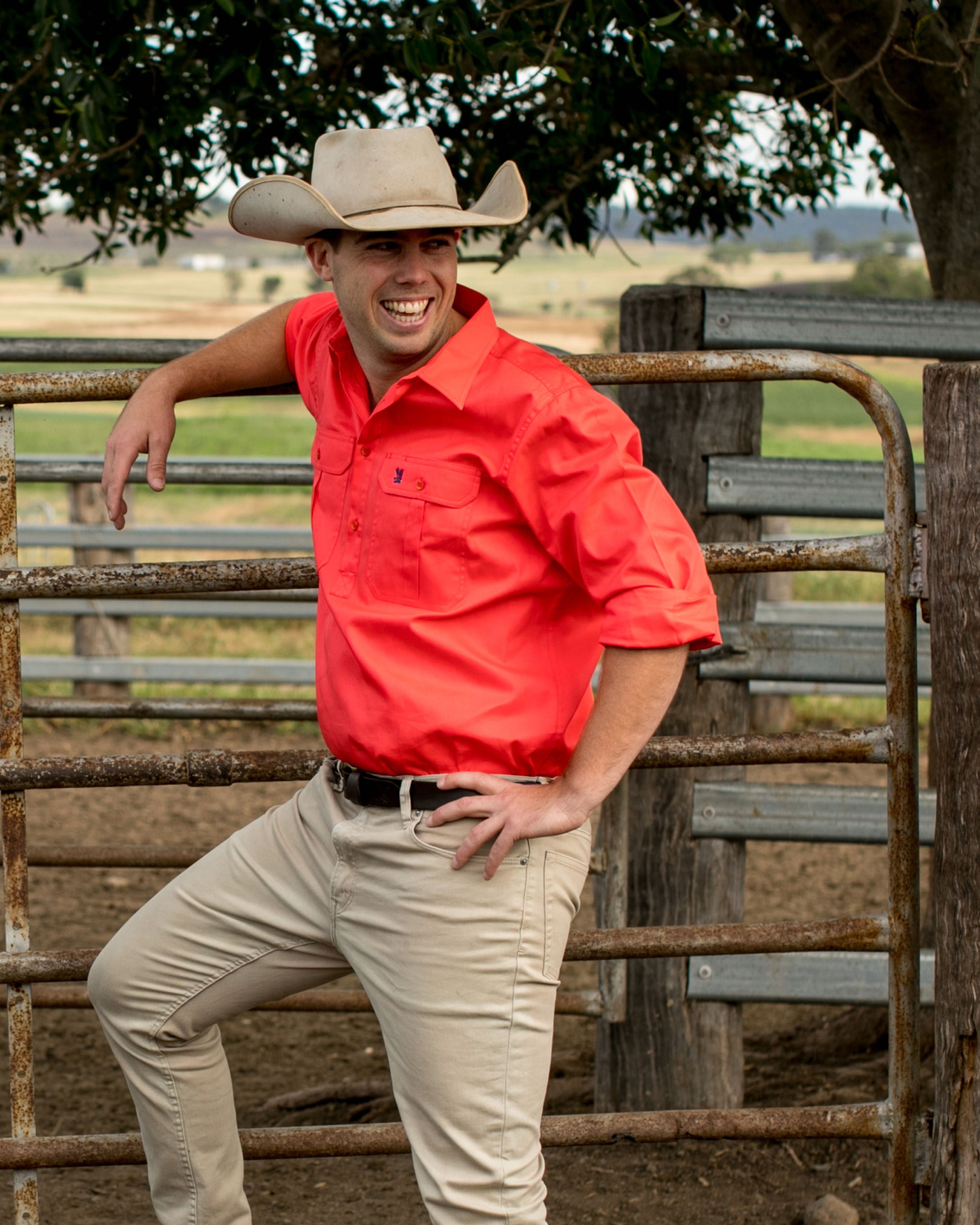 Built for long days and Australian conditions. Our men’s work shirt uses Dust N Boots’ exclusive 100% double-sided cotton drill (most Aussie work shirts use single-sided). You’ll feel the difference: comfort against the skin with durable outer yarns that wear hard and look tidy. Twin-needle seams, reinforced stress points and practical pockets make this a true work staple, tested by farmers, tradies and stockmen nationwide.