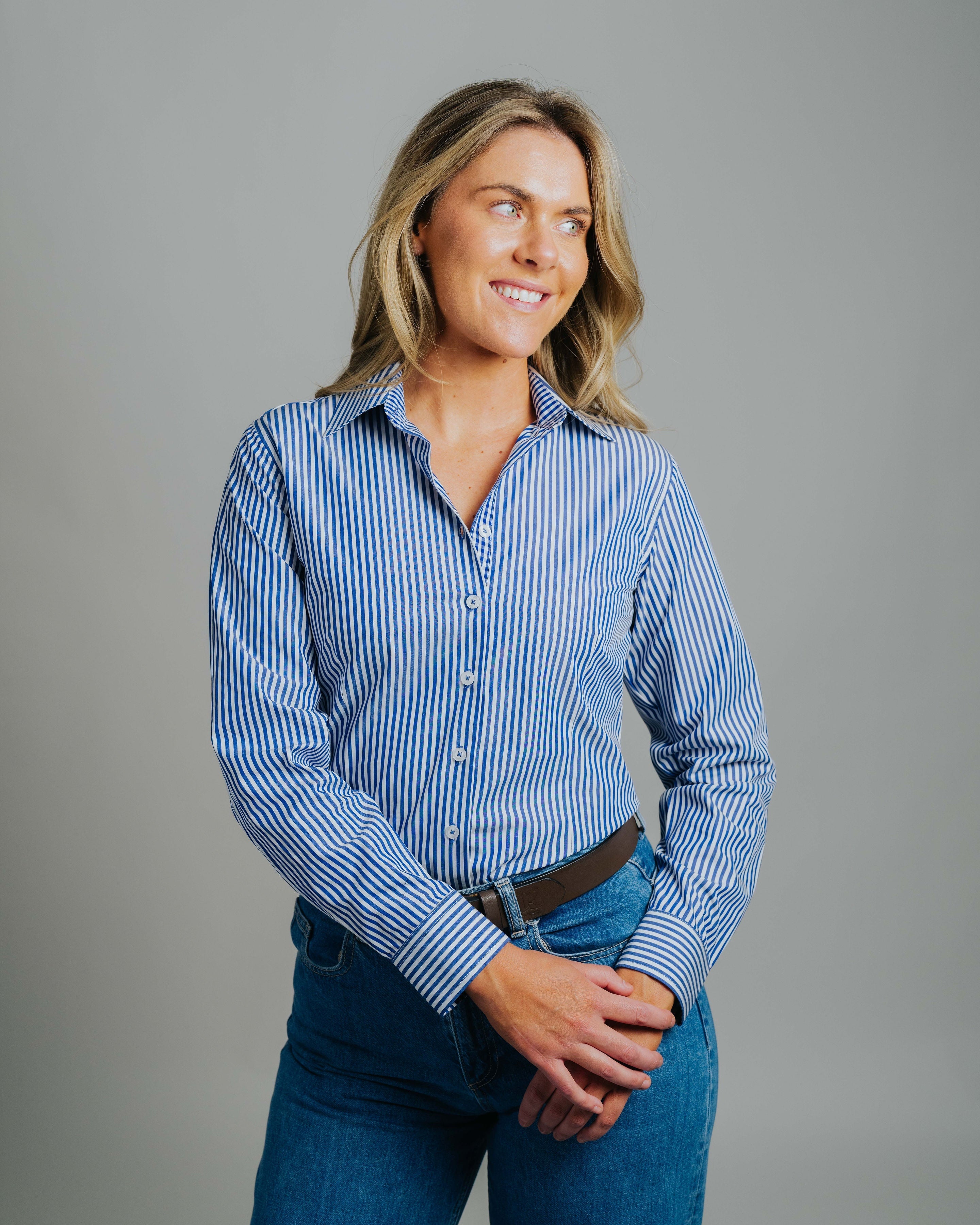 The Elly Shirt, a classic dress shirt designed to offer both style and comfort. Featuring a semi-fitted silhouette and expertly tailored curves, Elly provides a flattering fit that enhances the natural shape.