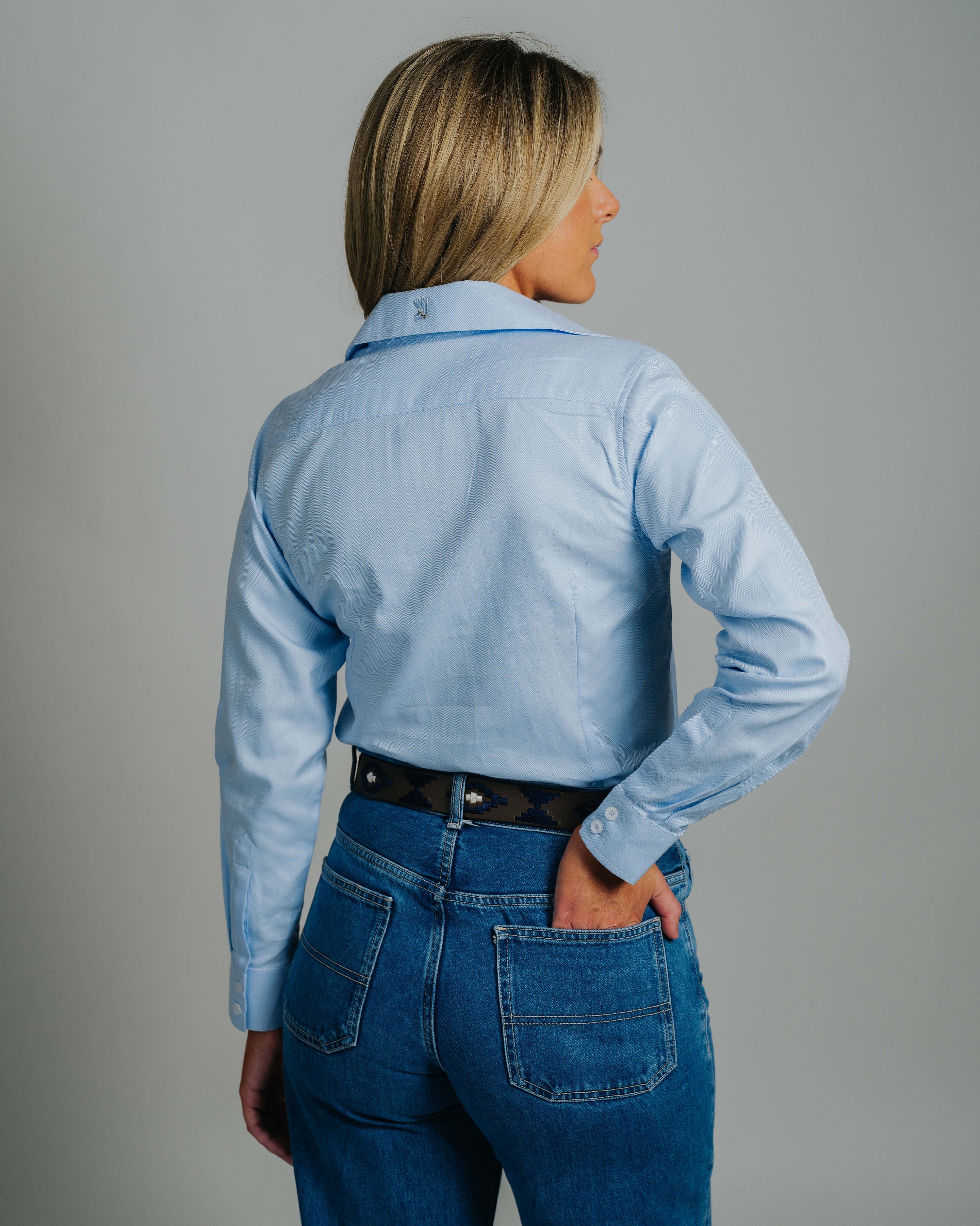 The Elly Shirt, a classic dress shirt designed to offer both style and comfort. Featuring a semi-fitted silhouette and expertly tailored curves, Elly provides a flattering fit that enhances the natural shape.