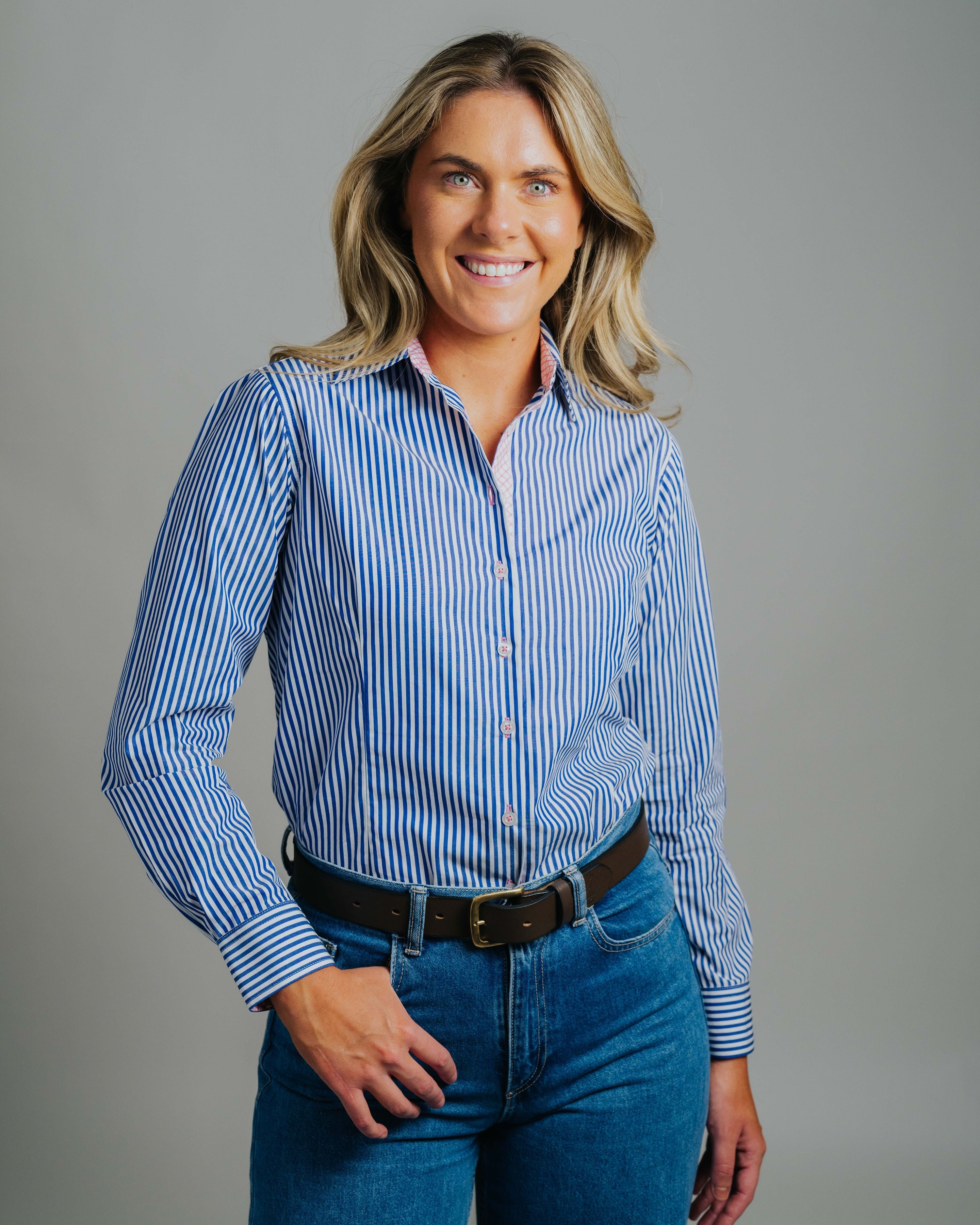 The Elly Shirt, a classic dress shirt designed to offer both style and comfort. Featuring a semi-fitted silhouette and expertly tailored curves, Elly provides a flattering fit that enhances the natural shape.