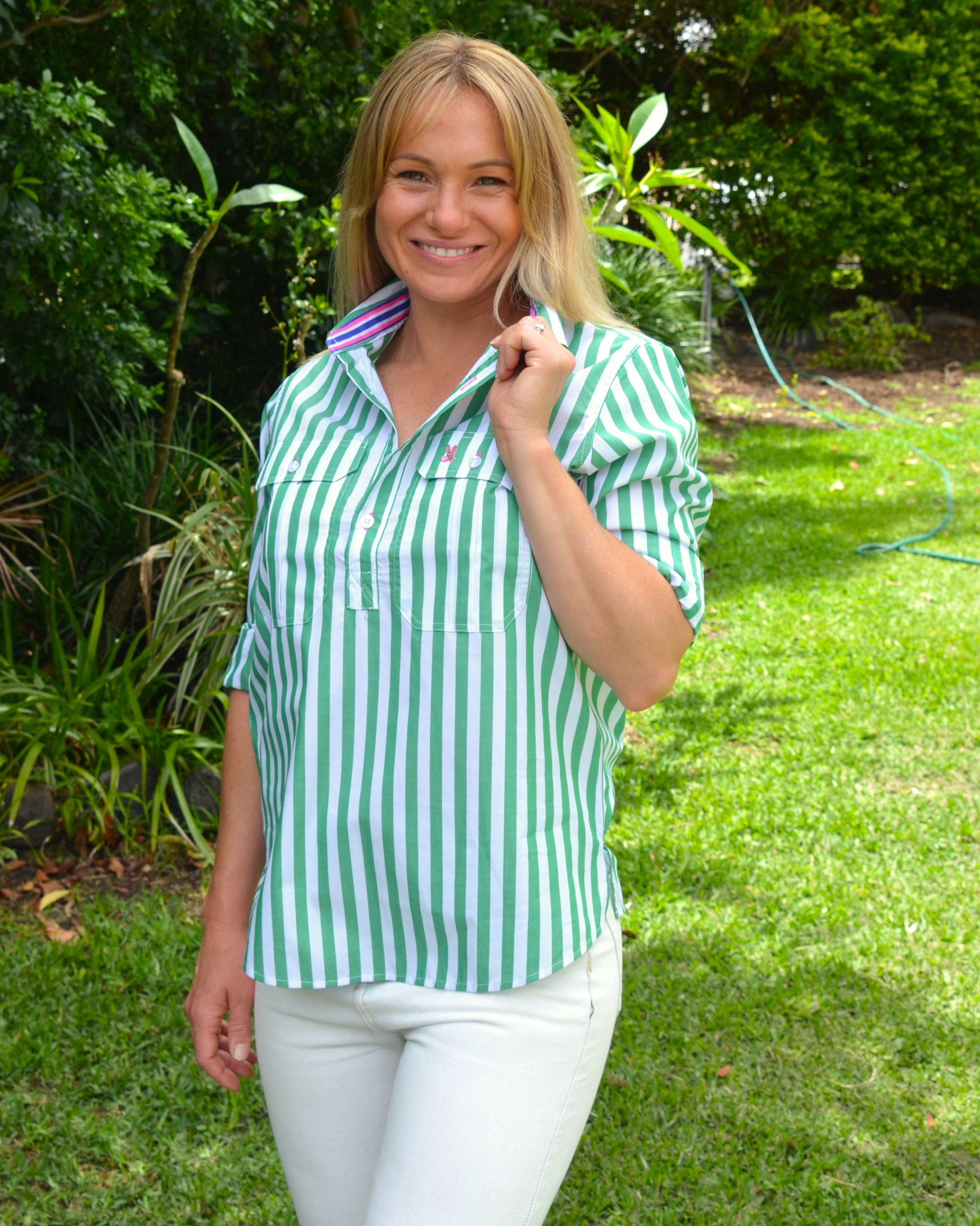 Our ladies' shirt sizing runs slightly larger than other brands – CLICK HERE to view our size chart and ensure you order the correct size.